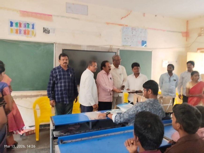 ఒత్తిడి లేకుండా పరీక్షలు రాయాలి... డాక్టర్ బి హరిబాబు. పదవ తరగతి విద్యార్థులకు విద్యాసామాగ్రి పంపిణీ - శుక్రవారం ప్రభుత్వ ఉన్నత పాఠశాలలో పదో తరగతి విద్యార్థులకు రాబోయే పబ్లిక్ పరీక్షల నేపథ్యంలో అవగాహన కార్యక్రమం నిర్వహించబడింది. ఈ కార్యక్రమాన్ని జనవిజ్ఞాన వేదిక ఆధ్వర్యంలో నిర్వహించగ,కార్యక్రమానికి జనవిజ్ఞాన వేదిక గౌరవ అధ్యక్షులు డా. బి. హరిబాబు గారు ముఖ్య అతిథిగా హాజరయ్యారు. ఈ సందర్భంగా డా. బి. హరిబాబు గారు మాట్లాడుతూ పదో తరగతి పబ్లిక్ పరీక్షలకు హాజరయ్యే విద్యార్థులు ముందుగా పరీక్షలకు అవసరమైన వస్తువులు సిద్ధం చేసుకోవాలని సూచించారు.ముఖ్యంగా హాల్ టికెట్, బ్లూ మరియు బ్లాక్ పెన్నులు, పెన్సిల్స్, లాంగ్ స్కేల్ వంటి వస్తువులు తమతో తీసుకువెళ్లాలని చెప్పారు. అలాగే పరీక్షలకు భయం లేకుండా, ఒత్తిడికి లోనుకాకుండా ధైర్యంగా పరీక్షలు రాయాలని విద్యార్థులకు సూచించారు. పదో తరగతి చదువుతున్న మొత్తం 54 మంది విద్యార్థుల పరీక్షకు సంబంధించిన విద్యాసామాగ్రి అందించారు. అదేవిధంగా క్రమశిక్షణతో చదువుకుని మంచి మార్కులు సాధించి పాఠశాలకు, ఉపాధ్యాయులకు మరియు తల్లిదండ్రులకు మంచి పేరు తీసుకురావాలని ఆయన ఆకాంక్షించారు. జనవిజ్ఞాన వేదిక జిల్లా బాధ్యులు కోటపాటి నారాయణ గారు కూడా విద్యార్థులకు పరీక్షల్లో ఎలా రాయాలి, సమయాన్ని ఎలా వినియోగించుకోవాలి, మంచి మార్కులు సాధించడానికి పాటించాల్సిన మెలకువలు వివరించారు. అలాగే విద్యార్థులు తల్లిదండ్రులు మరియు ఉపాధ్యాయుల మాటలు వినుతూ మంచి ప్రవర్తనతో ముందుకు సాగాలని సూచించారు. ఈ కార్యక్రమంలో పాఠశాల ఉపాధ్యాయులు ఉత్తరరావు గారు, యాకోబు గారు మరియు ఇతర ఉపాధ్యాయులు పాల్గొన్నారు.