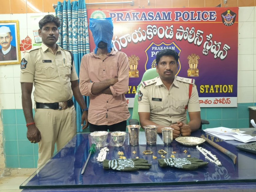 ప్రకాశం జిల్లా, సింగరాయకొండ లో ఇటీవల జరిగిన దొంగతనం కు సంబంధించి ముద్దాయిని పట్టుకున్నట్టు సింగరాయకొండ ఎస్సై బి మహేంద్ర తెలిపారు. చీమకుర్తి మండలం చీమకుర్తి గ్రామం కు చెందిన తన్నీరు శ్రీ హరి బాబు 21 సంవత్సరములు సింగరాయకొండ లోని రాఘవయ్య కాలనీకి చెందిన తువ్వాది అనిల్ ఇంటిలో చేసిన దొంగతనంకు సంబంధించి ఈ ముద్దాయిని అదుపులోకి తీసుకొని అతని వద్ద నుంచి సుమారు నాలుగు లక్షల రూపాయల సొత్తును నేరానికి ఉపయోగించిన పరికరములను స్వాధీనం చేసుకొని కోర్టుకు హాజరు పరచినట్టు తెలిపారు.